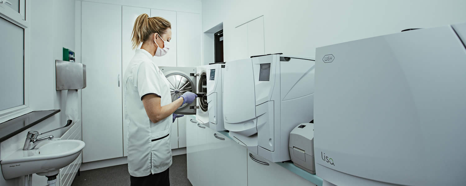 Cleanliness and hygiene are paramount at the practice. Patients can rest assured of the very best standards of care in terms of decontamination. The practice boasts a modern central sterilisation unit, which comprises of separate dirty and clean sterilisation rooms with separate airflow as set out in the government’s decontamination Best Practice Policy: HTM01-05.