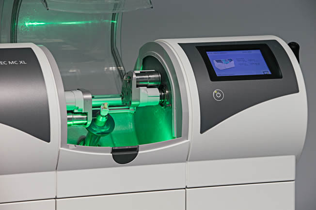 Created by technicians with 45 years of experience, we are able to scan the tooth and bite without the need for mouth impressions that can cause gagging. The crown can then be computer designed to the ideal form and function using computer aided design technology. Once approved, the crown can then be constructed using the in-house milling machine. Then final stage of construction involves staining, glazing and firing in our furnace.